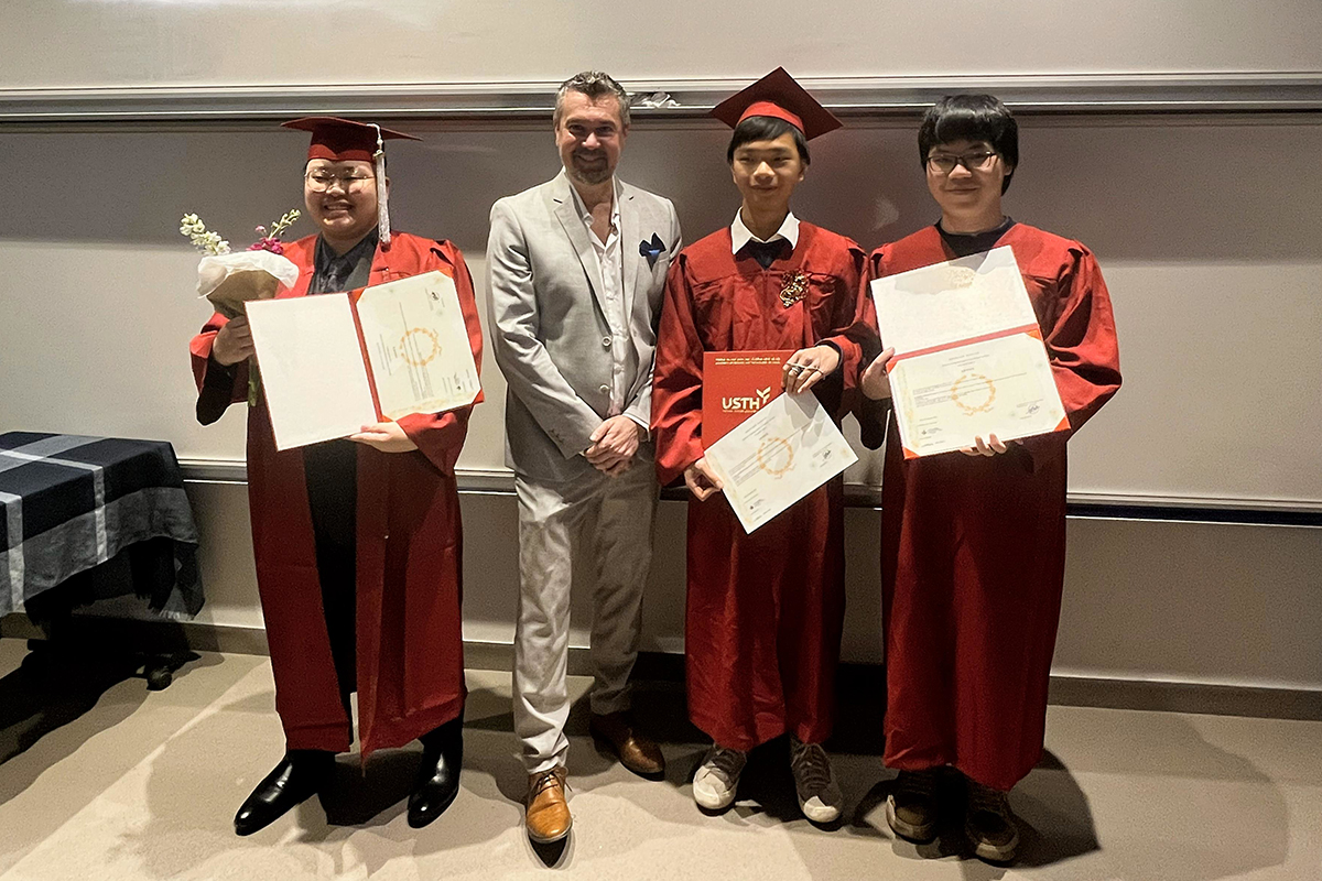 Trois étudiants de l'Université des Sciences et technologies de Hanoï, double diplômés de la L3 Chimie