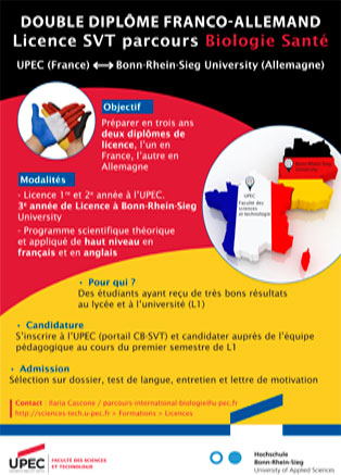 Contenu du double diplôme franco-allemand de licence SVT parcours Biologie-Santé international